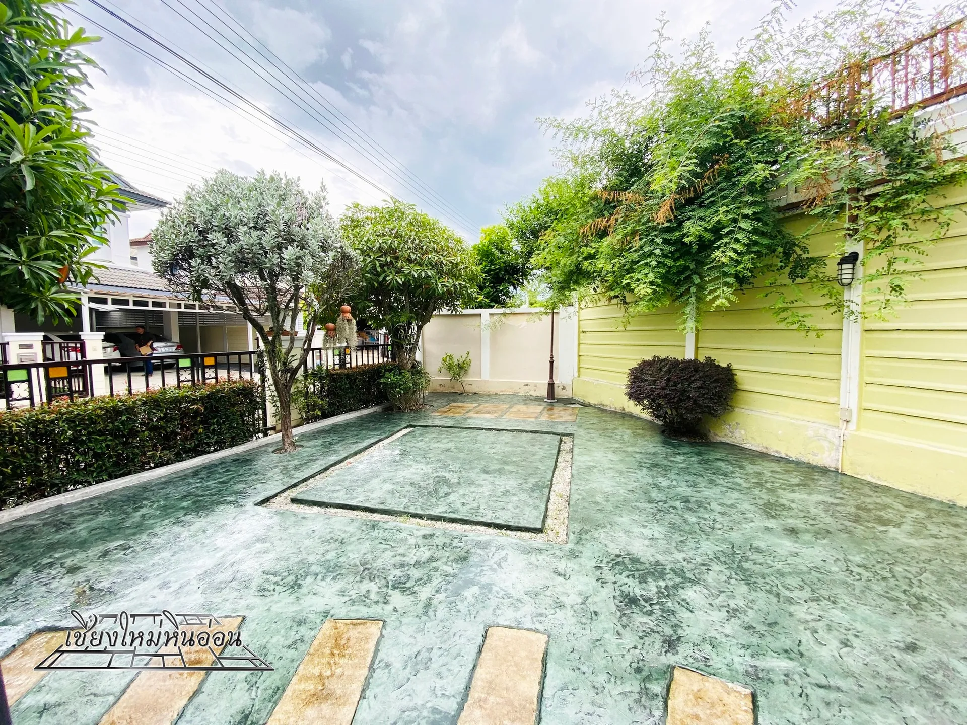 พื้นที่ลานทางเข้าโรงจอดรถ โรงจอดรถ ข้างบ้าน สวยงาม ฟิลลิ่งมันดีตั้งแต่เปิดประตูรั้ว